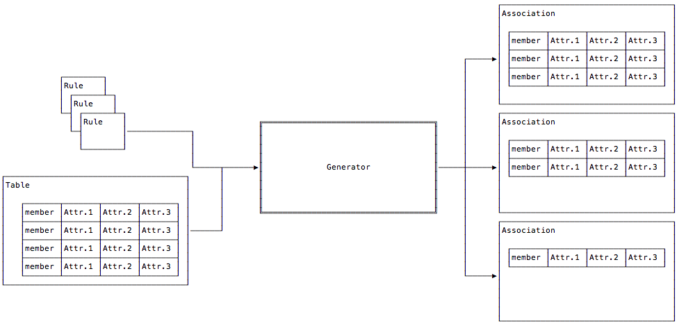 As introduced in the Association Overview, the figure above shows all the major players used in generating associations. Meanwhile, the figure below is the overview but using the class names involved.
